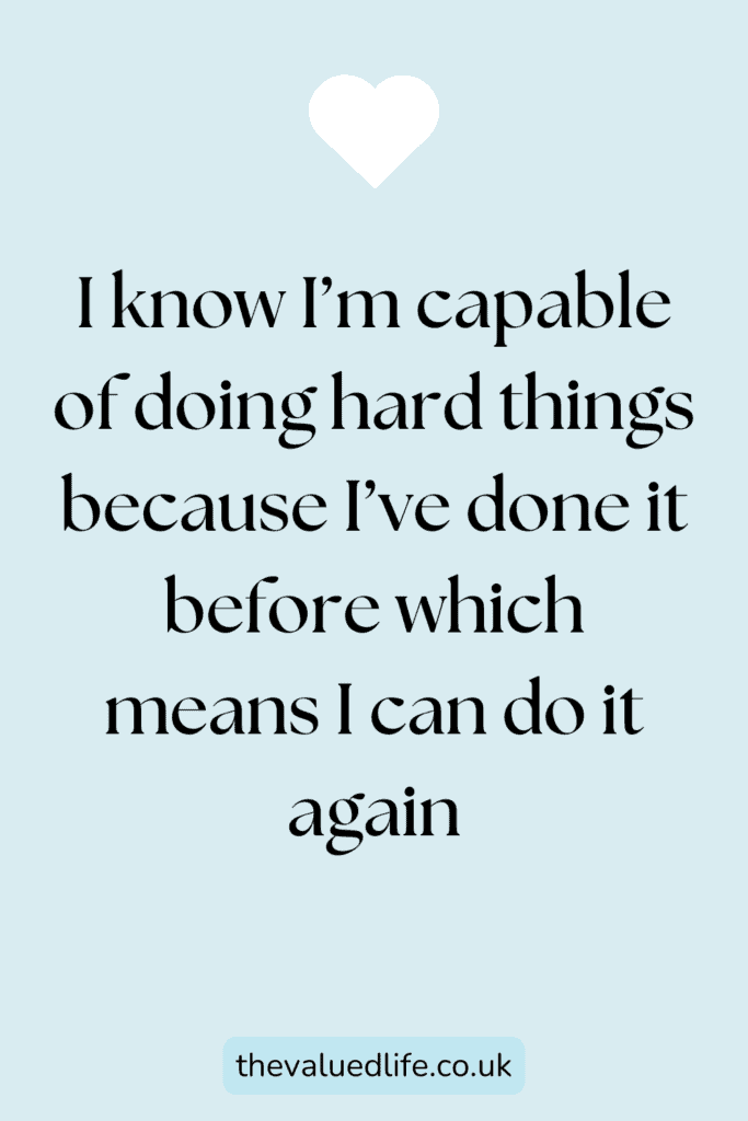 - I know I’m capable of doing hard things because I’ve done it before which means I can do it again
